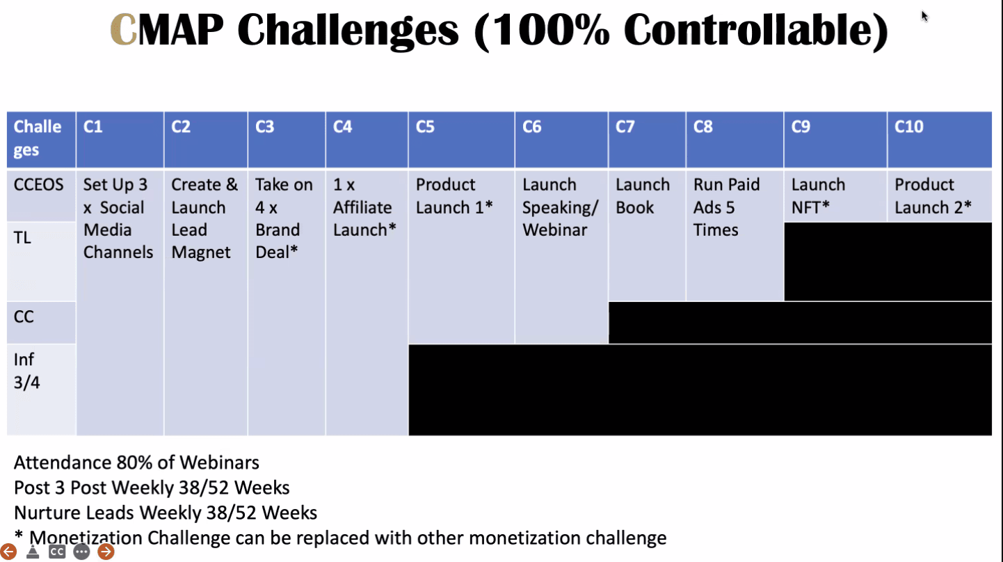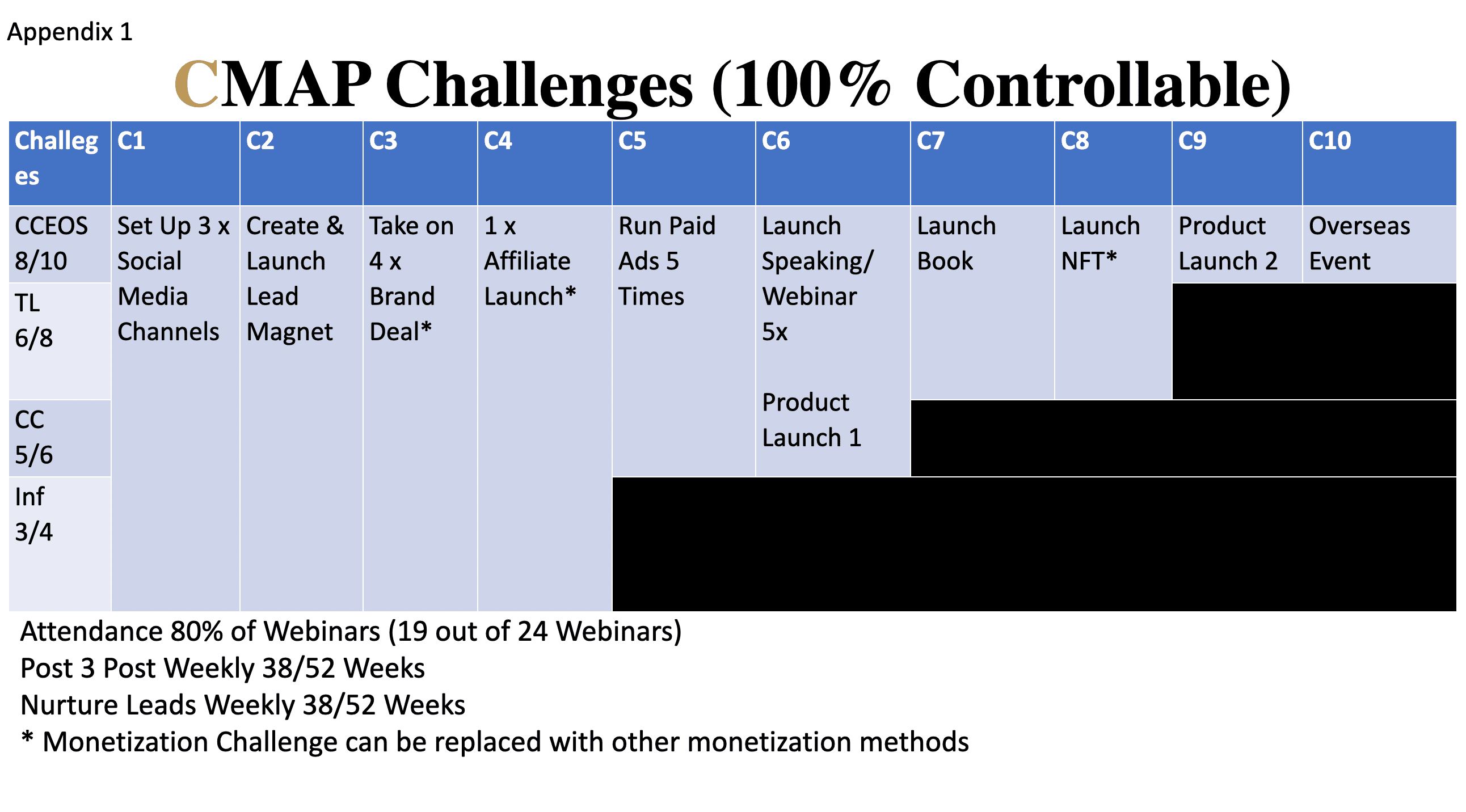 a. The duration of the CMAP is for one (1) year for Indie, Influencers, Ccreators, Thought Leaders and two (2) years for CCEOS. As The Apprentice enrolled in the CMAP, resources will be prioritised and dedicated to The Apprentice from the start till the end of the CMAP.